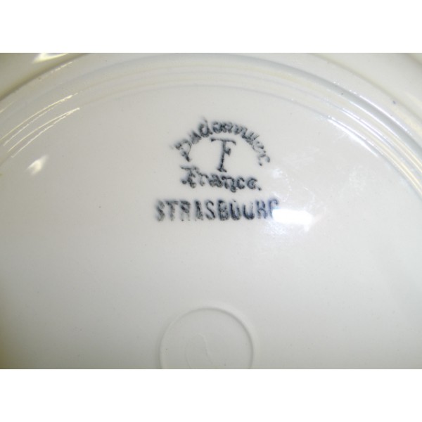 earthenware dinner plate stamped Badonviller France, Strasbourg pattern, blue decoration, circa 1930.