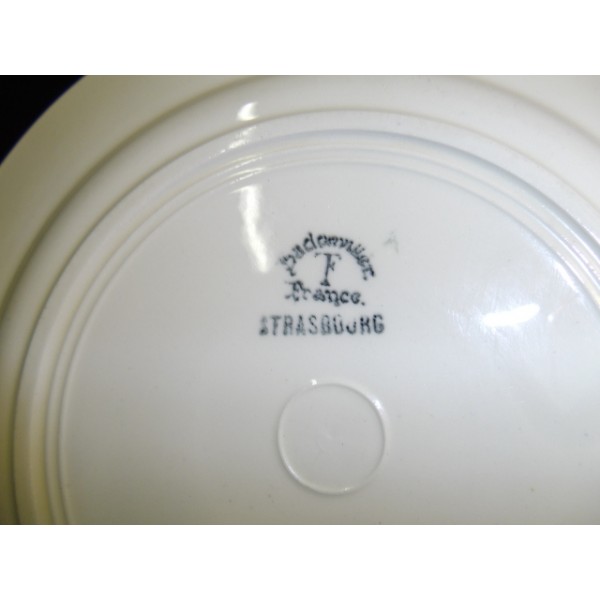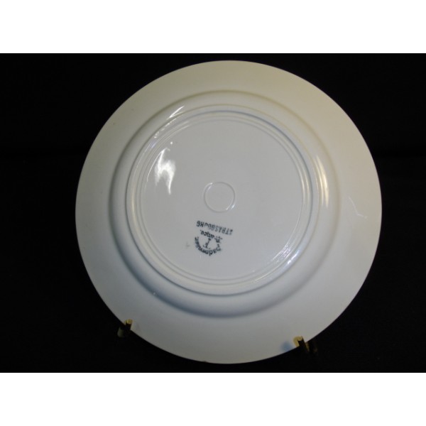 earthenware dinner plate stamped Badonviller France, Strasbourg pattern, blue decoration, circa 1930.