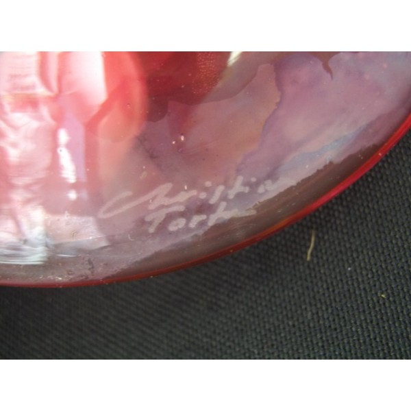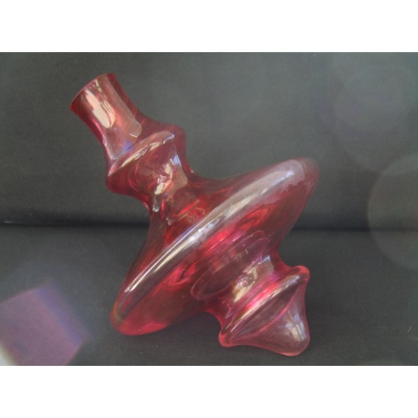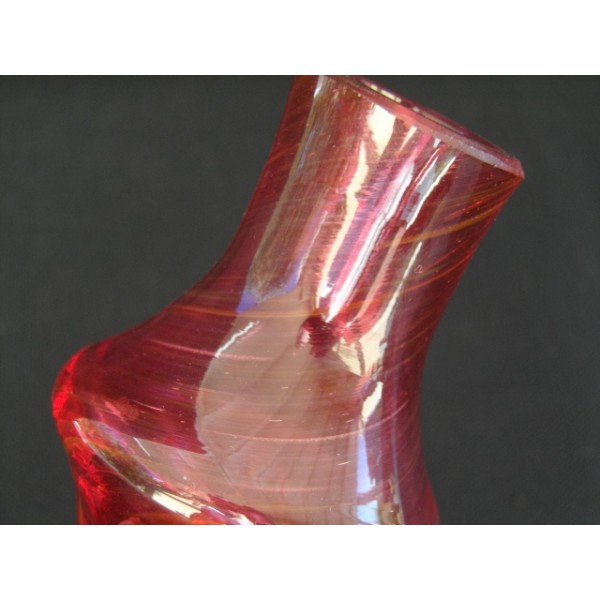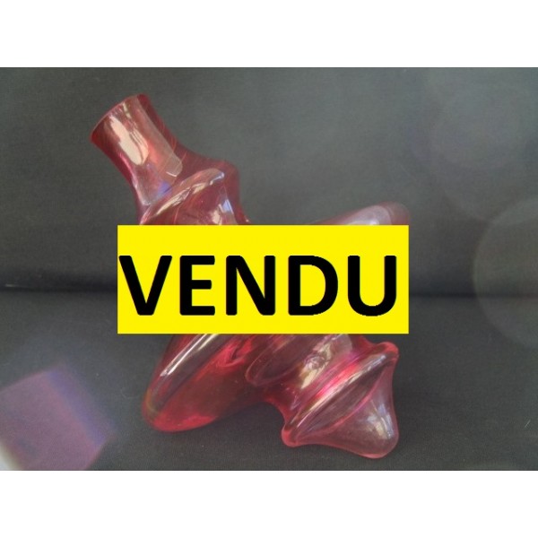 Vase in crystal signed Christian Tortu model Tupi, pink tyrian form top, the water does not overflow despite the fact that the vase is leaned.
