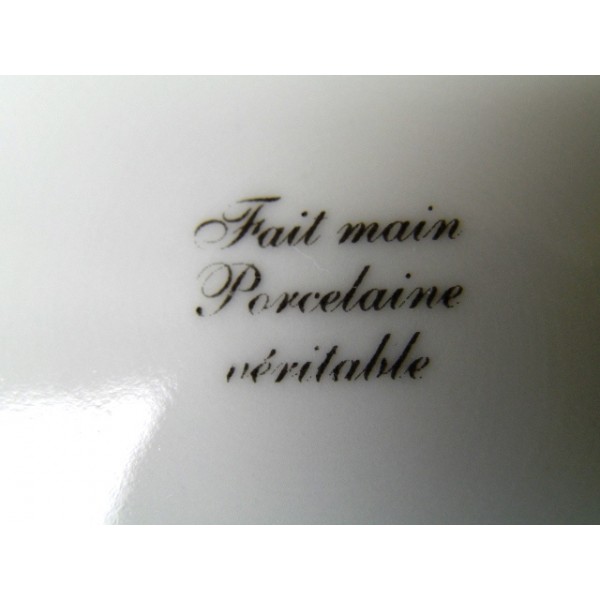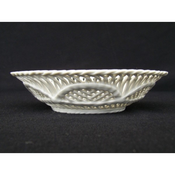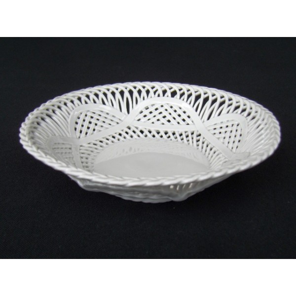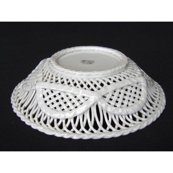 White porcelain dish with openwork imitation wicker, inscription on the back handmade genuine porcelain.
