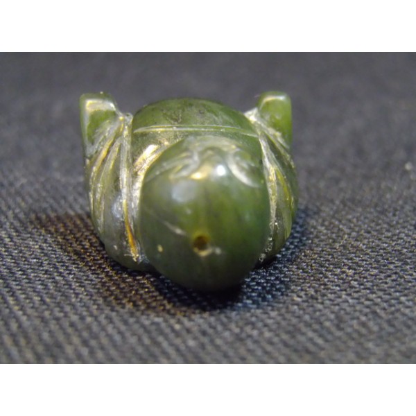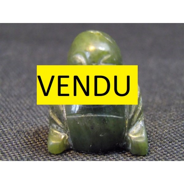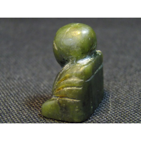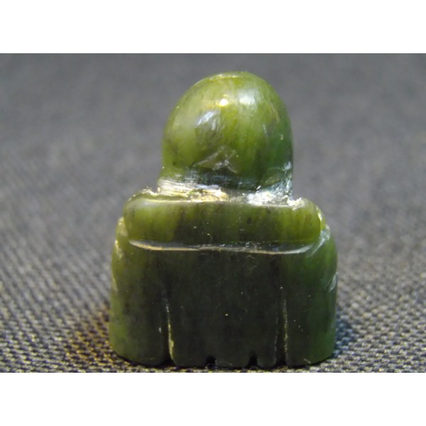 Small statuette of Buddha seated in dark green jade, pierced on the head to be mounted in pendant.