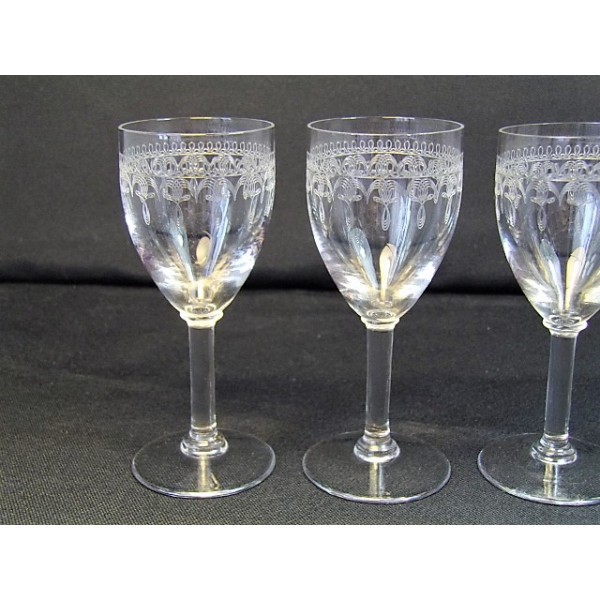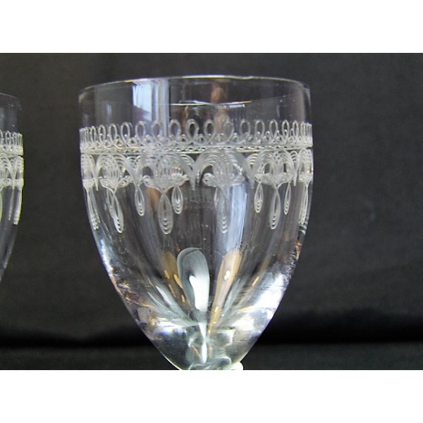 Set of 5 glasses in Porto with Baccarat crystal foot, frieze decor engraved with buckles, late 19th century.