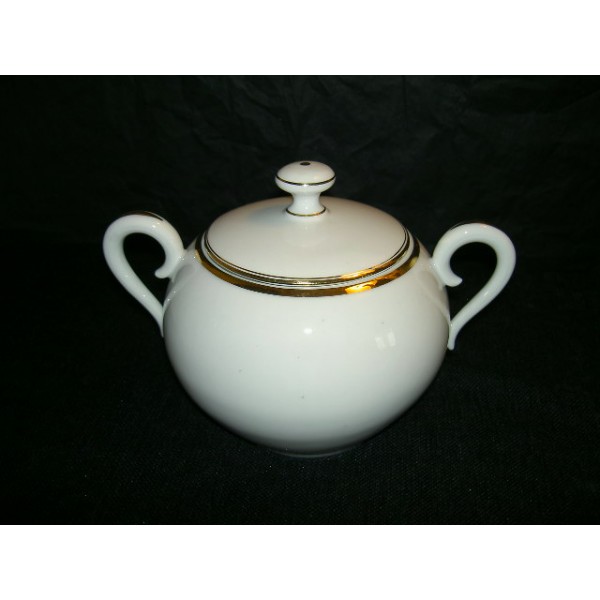 Former sugar white porcelain decorated with gilt edging, initial N engraved below.