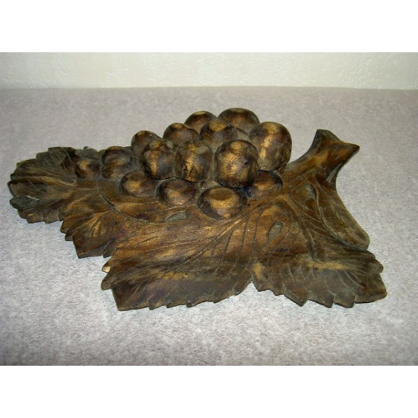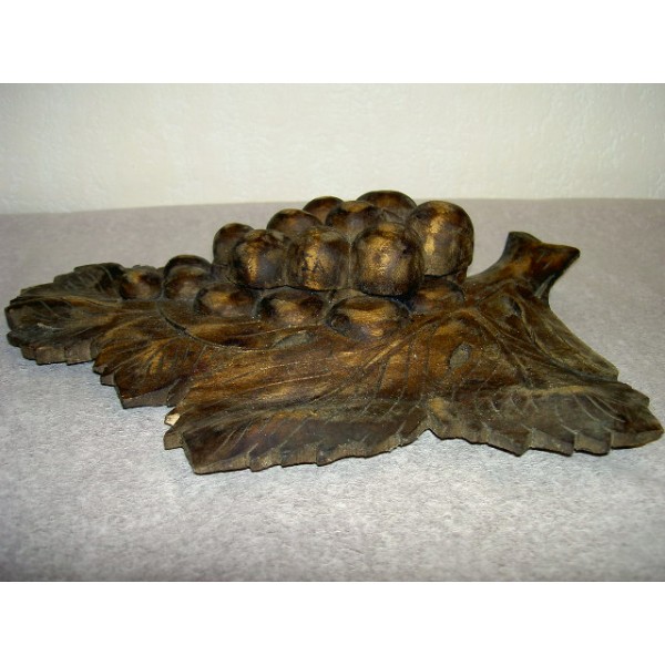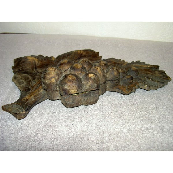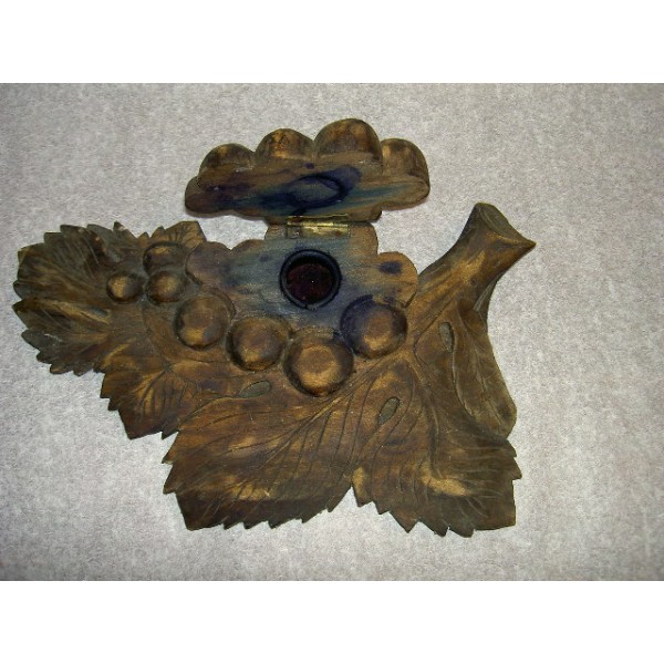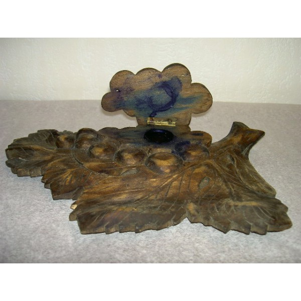 Inkwell carved in the shape of a bunch of grapes on vine leaf