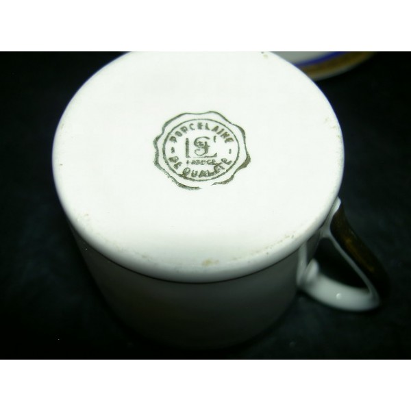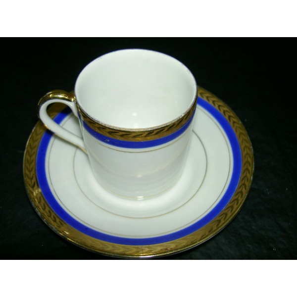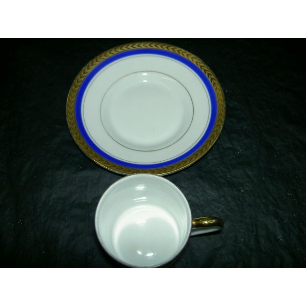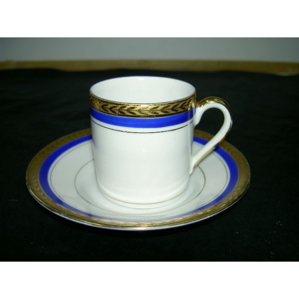 Cup and saucer, porcelain quality pattern golden leaves and blue thread