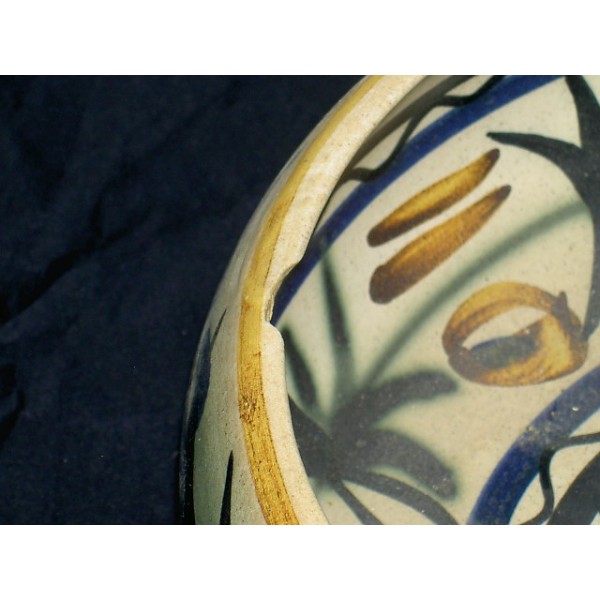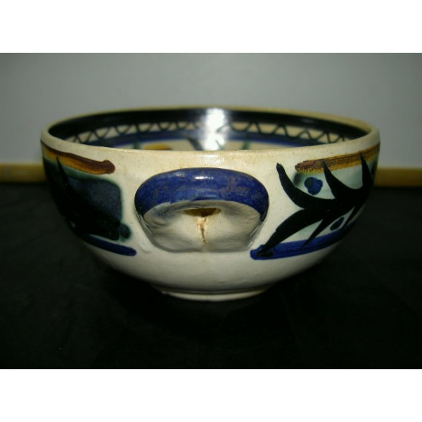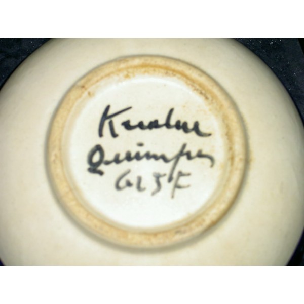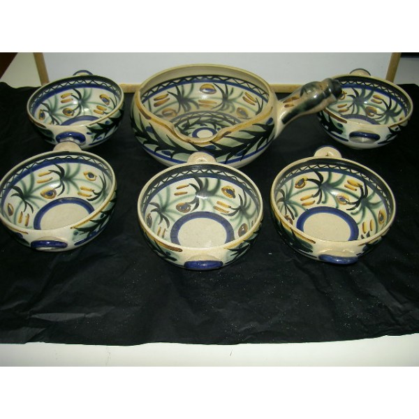 Service soup Keraluc Quimper, consisting of 5 bowls in very good condition (diameter 13.5 cm high x 7 cm) skillet with 3 égrenures (diam 21 cm high x 9 cm)