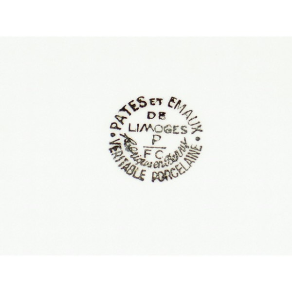 Hollow flat round Limoges porcelain paste made of stamped Berry P / CF.