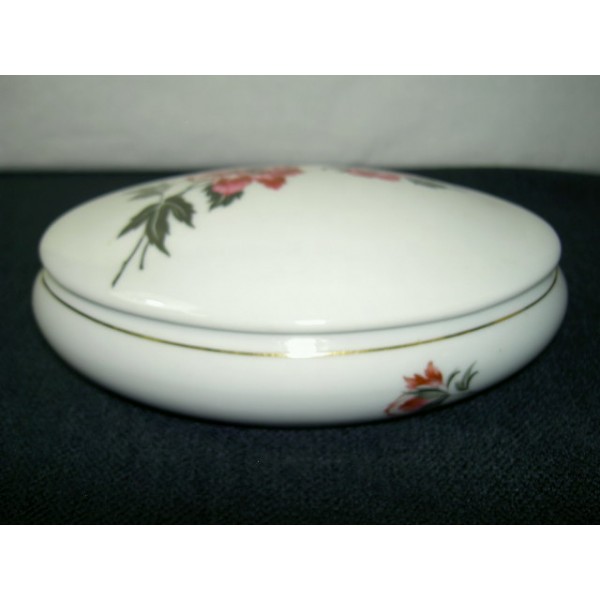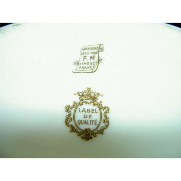 Candy box Limoges porcelain stamped FM, floral decor mechanical,