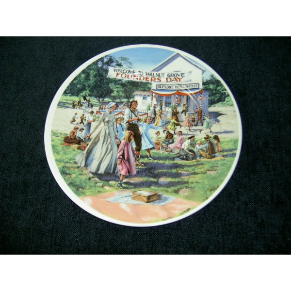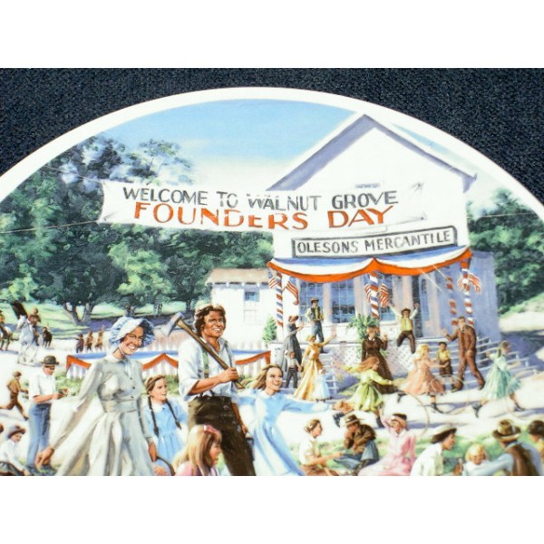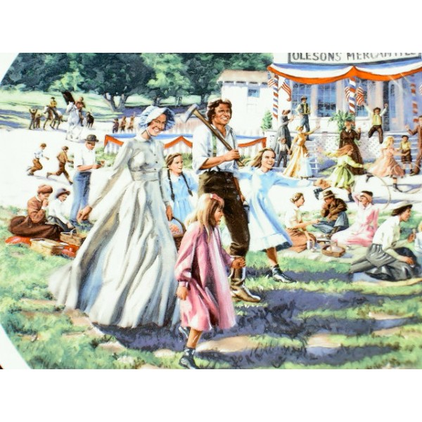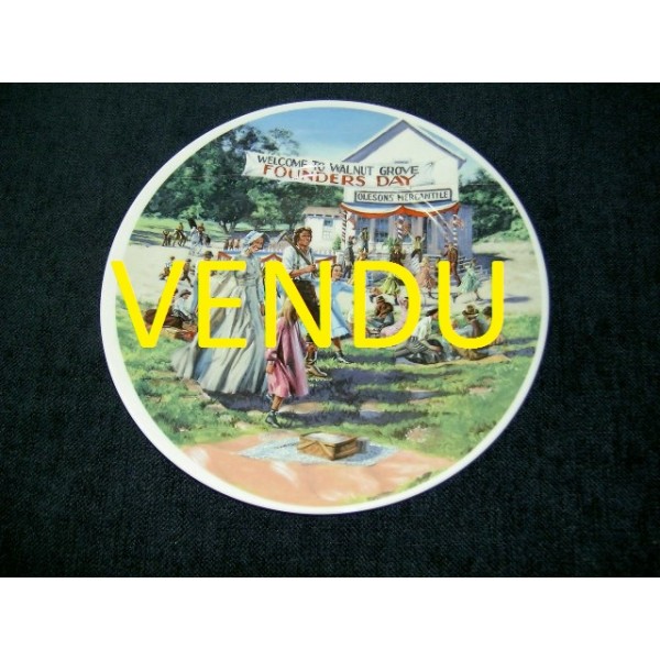 Decorative plate Limoges porcelain decorated with the theme of the TV series "Little House on the Prairie"