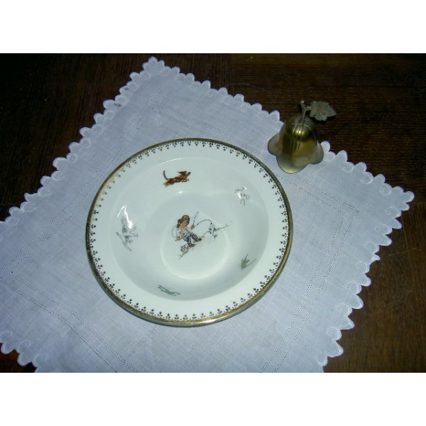 Soup plate porcelain child with a decoration of small animals and fisherman. Berry made with paste Limoges. Dimension: 16.5 cm Ø