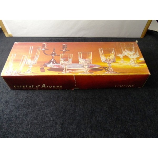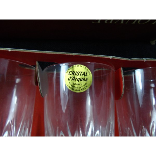 Set of 6 water glasses crystal Arques model Louvre, never used (labels)