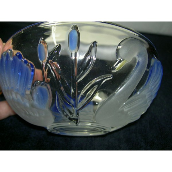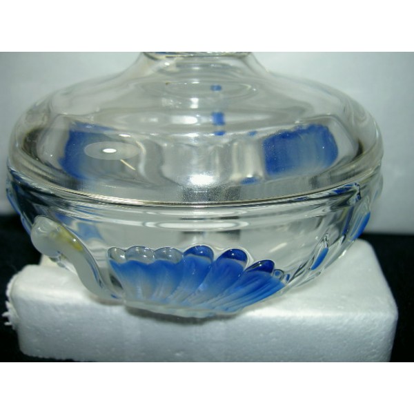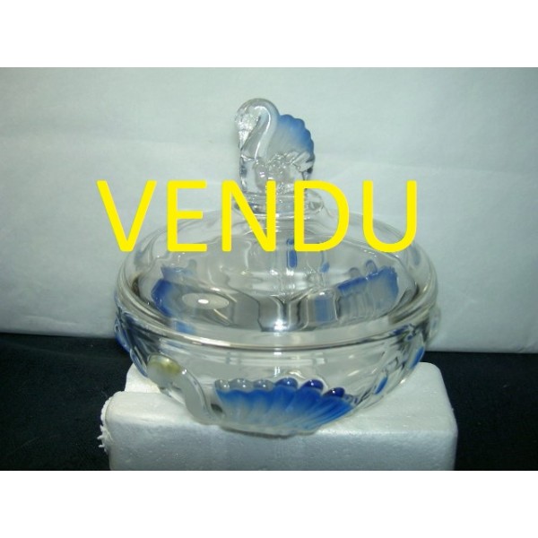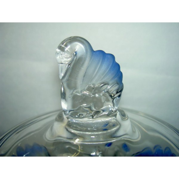 Drageoir glass decoration in relief swans frosted colored blue, swan-shaped plug