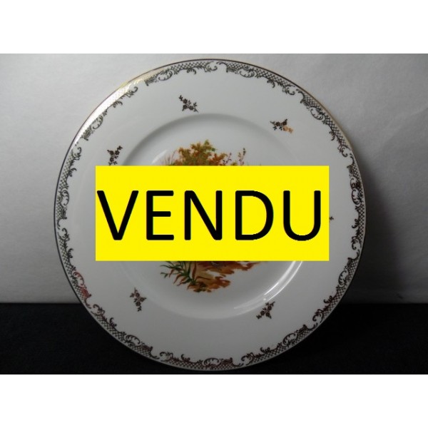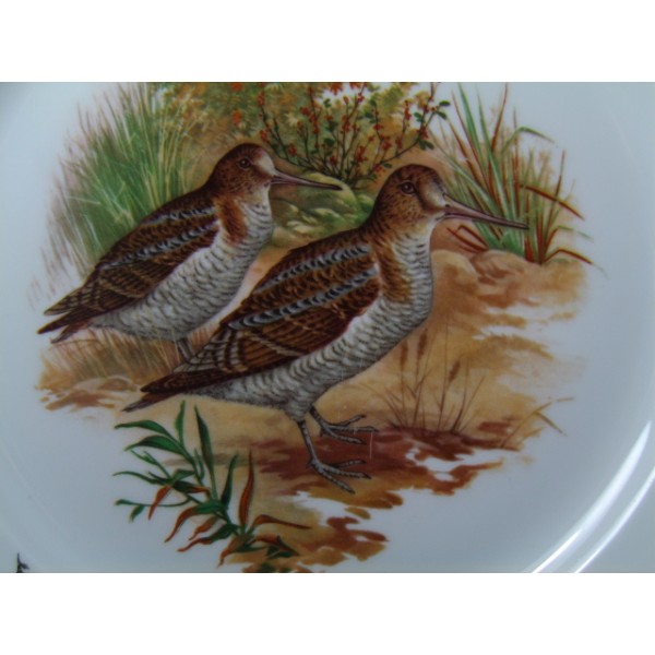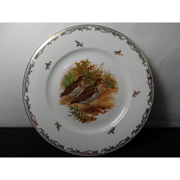 Flat plate porcelain décor woodcock Chadelaud stamped Limoges.