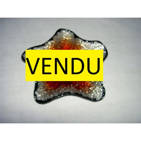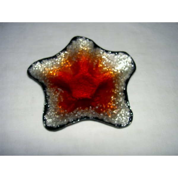 Empty cup or pocket-shaped Limoges enamels star on a red background, signed, in very good condition. Wingspan: 16 cm.