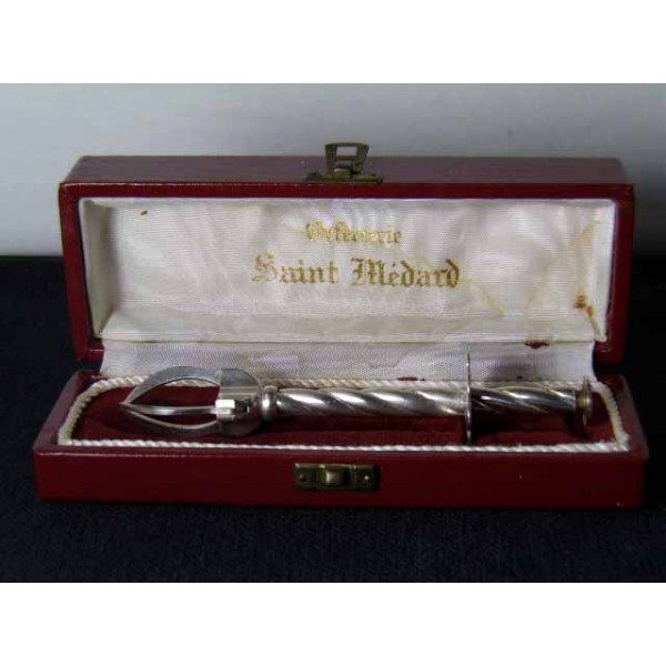 Good condition with no visible punch, sold in its original box marked Silver Saint Médard, length: 12.5 cm