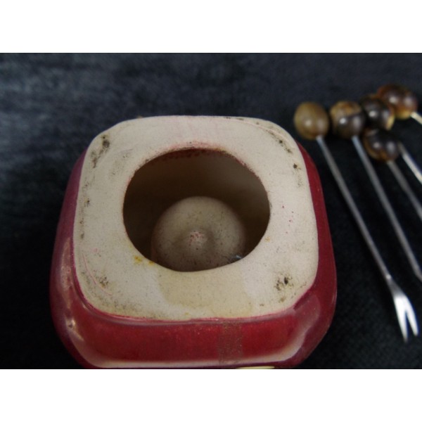 Set of 12 picks snails with taking horn, s fork in a support thimble-shaped ceramic.