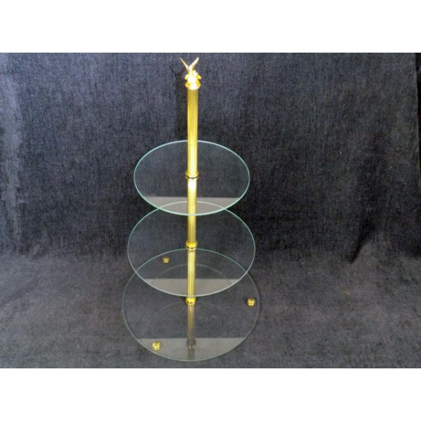 Mute servant 3 levels, vintage glass and brass, decorated with doves taken.