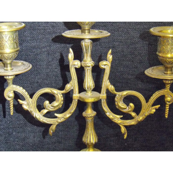 Old candlestick three branches bronze XIXth, removable candle rings, it is complete.