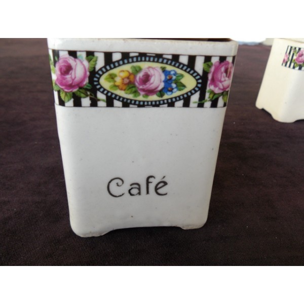 Dimensions: pot meal (height 17 cm, 9.5 cm side x 10.5 cm), sugar pot (height 15.5 cm, 8.5 cm side x 9 cm), coffee pot (height 14.5 cm side 7.5 cm x 8 cm), tea pot (height 12 cm, side 6 cm x 7 cm), pepper pot (height 9.5 cm, the 5 cm x 6 cm)