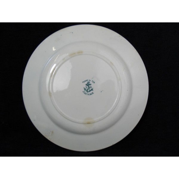 Plate in faience Earth Iron Youth model LG stamped with an anchor.