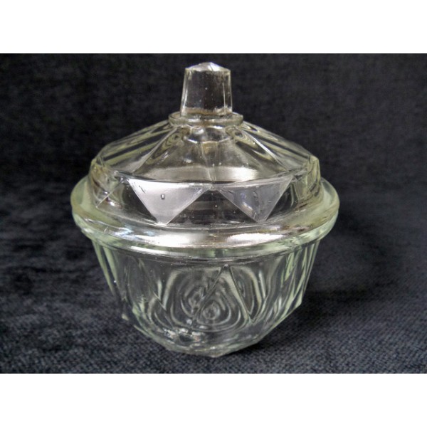 Good condition.There small cracks in the glass (manufacturing defects).Height with lid 12 cm, maximum diameter, 11 cm, bottom diameter of 6.5 cm