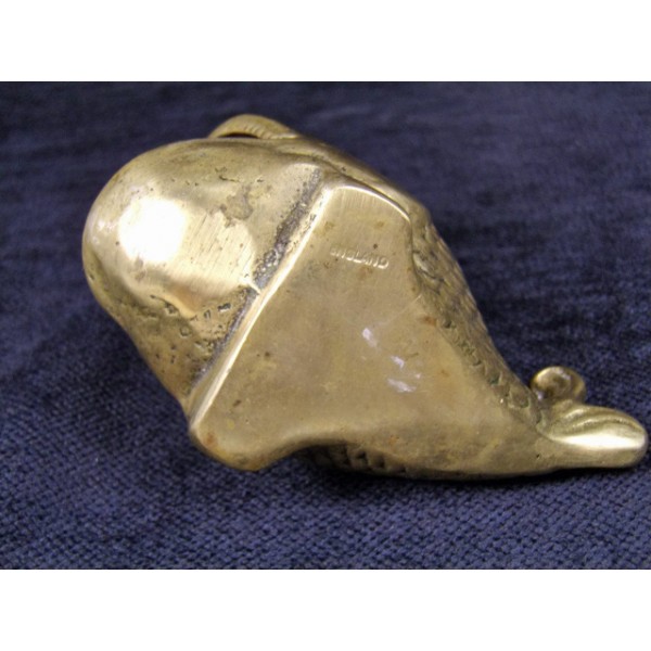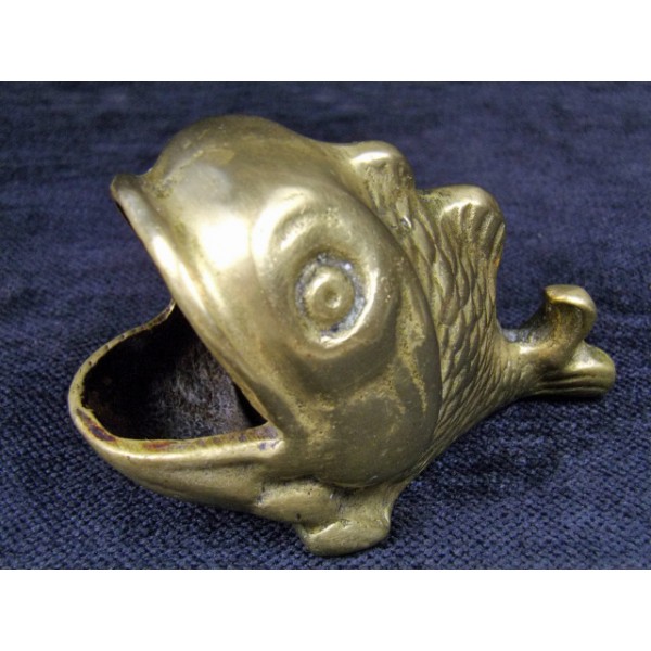 Fish in bronze marked "england", open mouth can serve as ashtray or receptacle to matches.