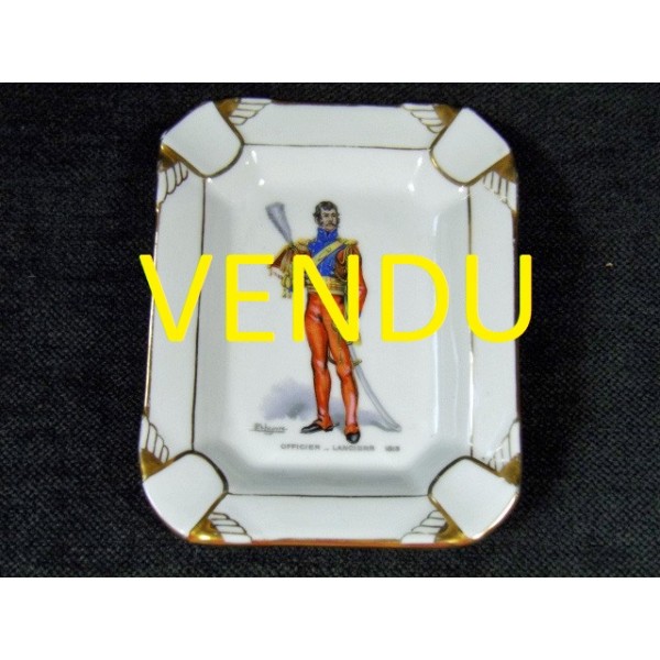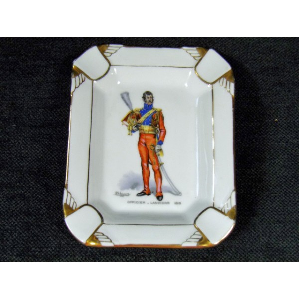 Cup ashtray Limoges porcelain decor signed by an officer-lancers 1813 Napoleon's army