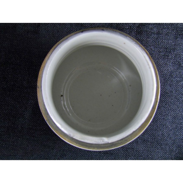 Good condition, there is a nick on the rim of the pot. Dimensions: 12.5 cm maximum height, maximum diameter 9 cm, 0.5 l capacity.