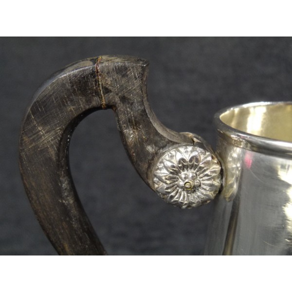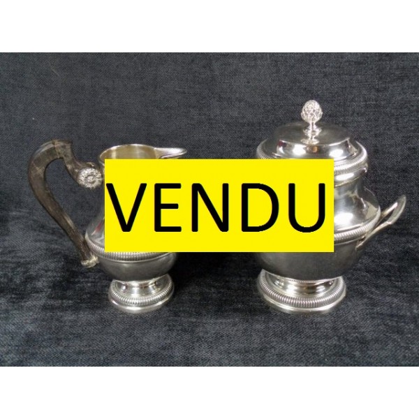 Together for coffee service in silver metal, late nineteenth early twentieth composed of two parts: an ebony handle creamer, sugar bowl with pine cone plug, punches Goldsmith (FB).