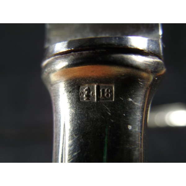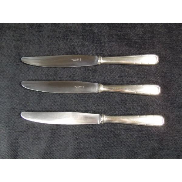 Set of 3 silver-plated handle knives, stainless steel blade, art deco, punch christofle rider and initial OC, 18gr, nickel-silver and nickel-silver blade stainless paris