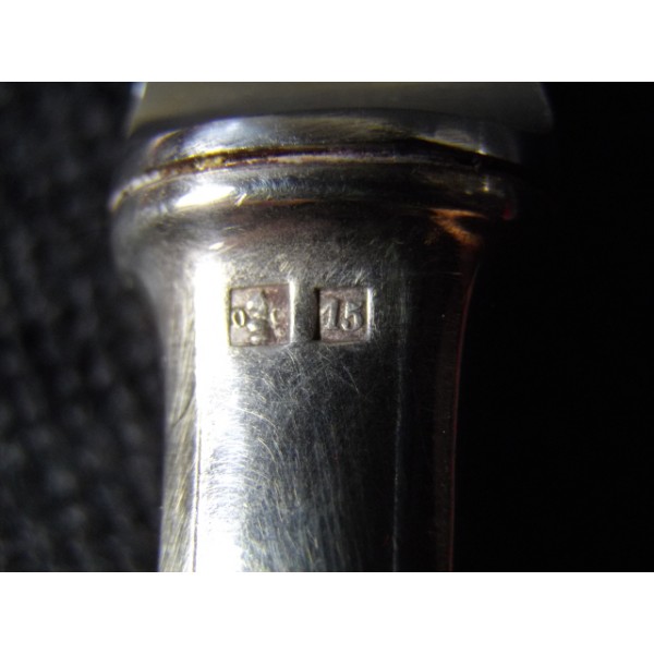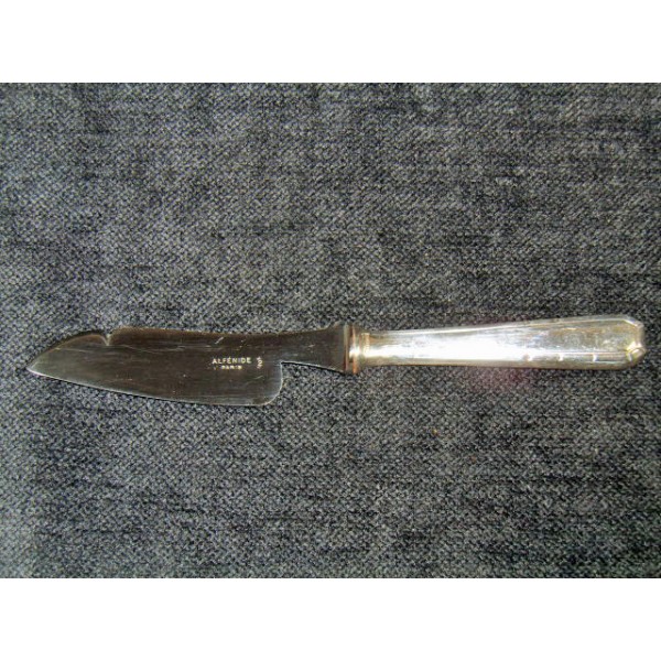 Butter knife or cheese house Christofle, art deco era (20 years), silver metal punches initial rider OC, nickel-silver. stainless steel blade, silver metal handle