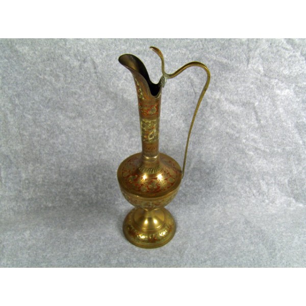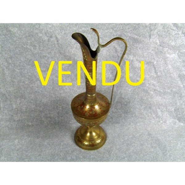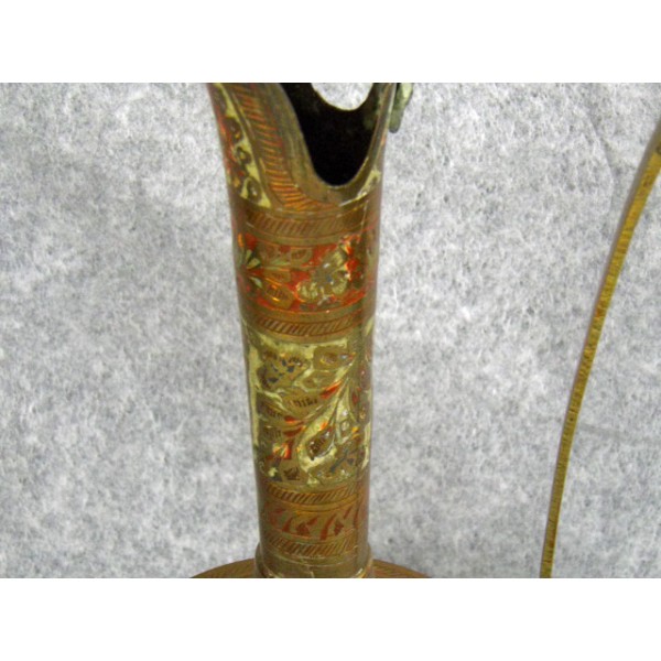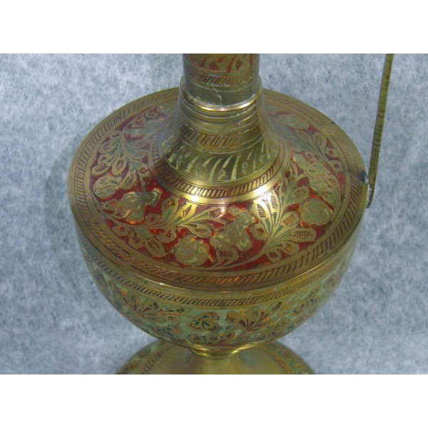 For Oriental décor, this magnificent ewer engraved metal embellished with a red and ivory enamel, stamped stylishly India 87C.