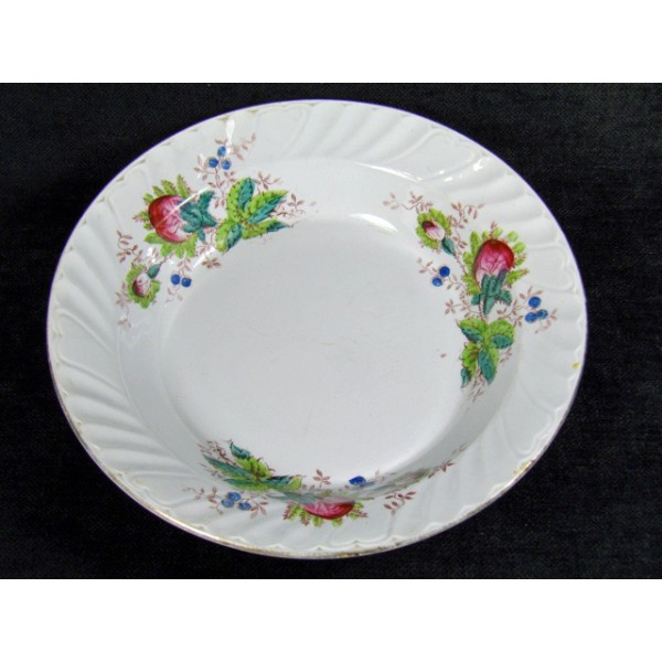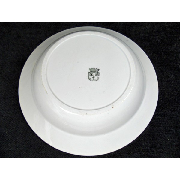 Hollow round earthenware dish Moulin des Loups, numbered 451, decor green garland