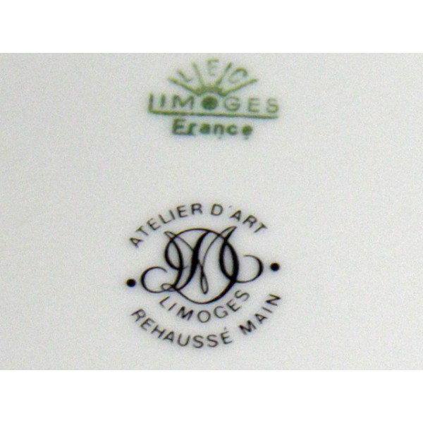 Good condition (there is a égrenures based, does not alter the aesthetics), embellished floral decoration hand stamped Leclerc Limoges and Limoges Art Workshop DM embellished hand.