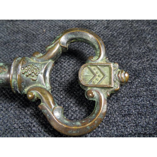 Key corkscrew and bottle opener metal imitating patinated bronze.