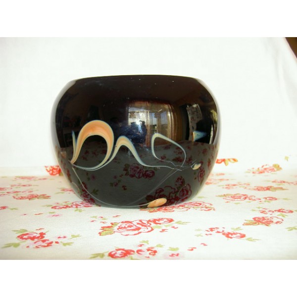 Clay pot of thick glass with a black inlaid, which could be the signature of glass, 70s.