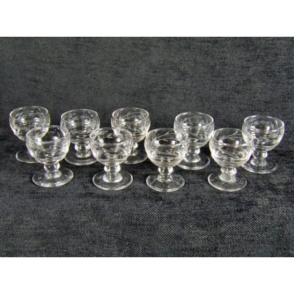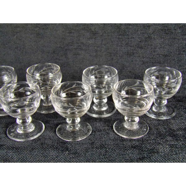 Old glasses liqueur 9 rooms, decor reeds engraved