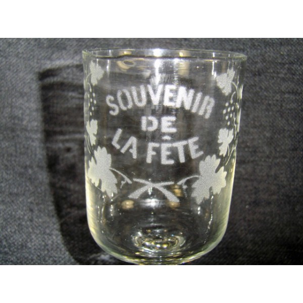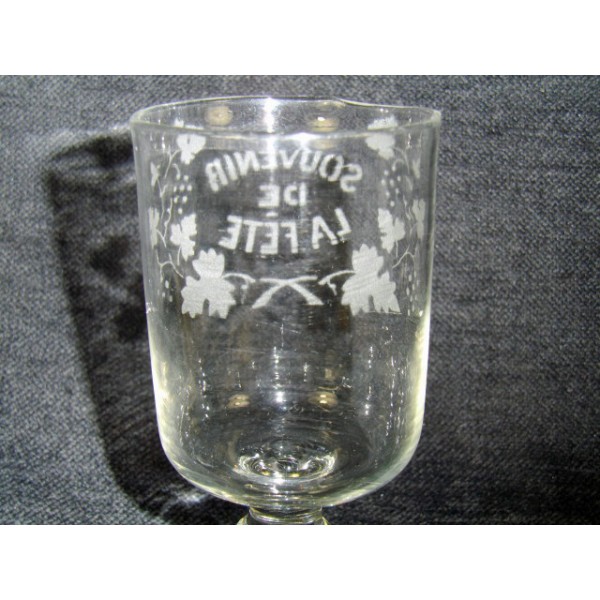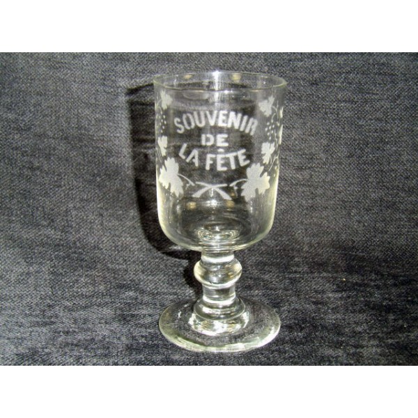 Glass former foot "Remember the party" early Twentieth, engraved decoration.