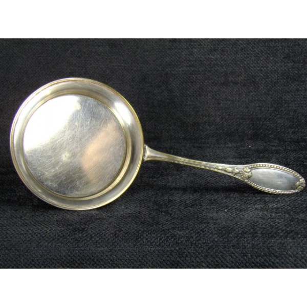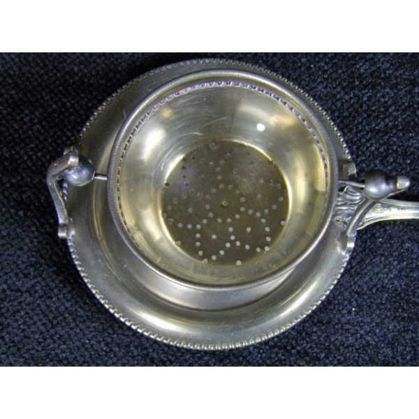 Tea strainer silver metal beaded decor, late nineteenth century, punch Sphinx seated.