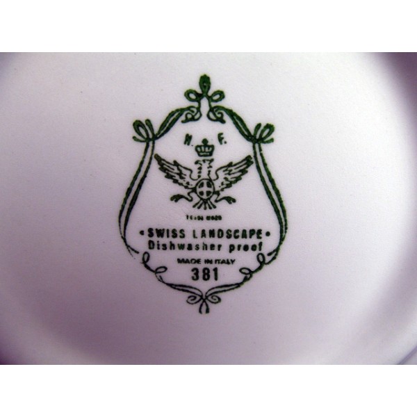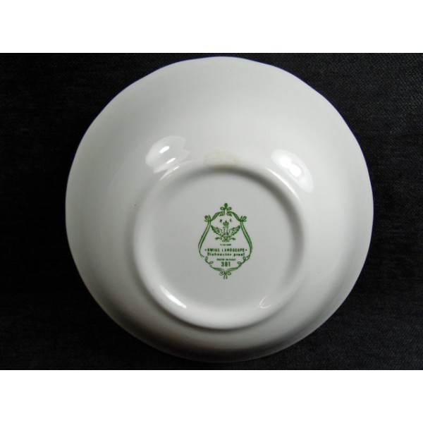 Perfect dish for fruit salad in Italian faience style décor Swiss Landscape.