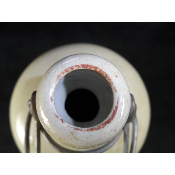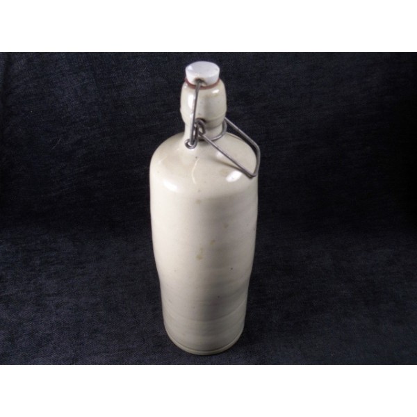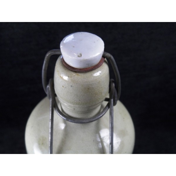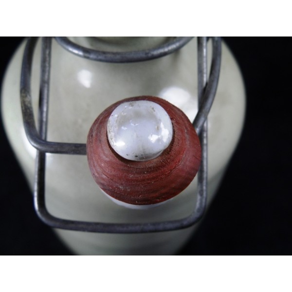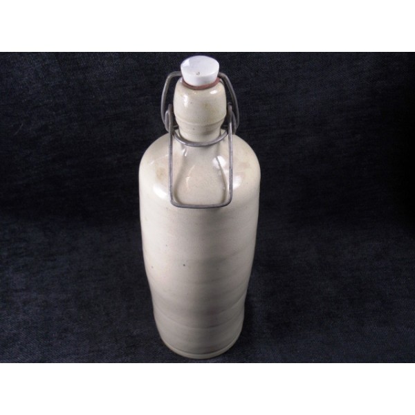 Ancienne bouteille à cidre ou bière, en grès, avec un bouchon en porcelaine retenu par un système en métal, caoutchouc d'étanchéité.