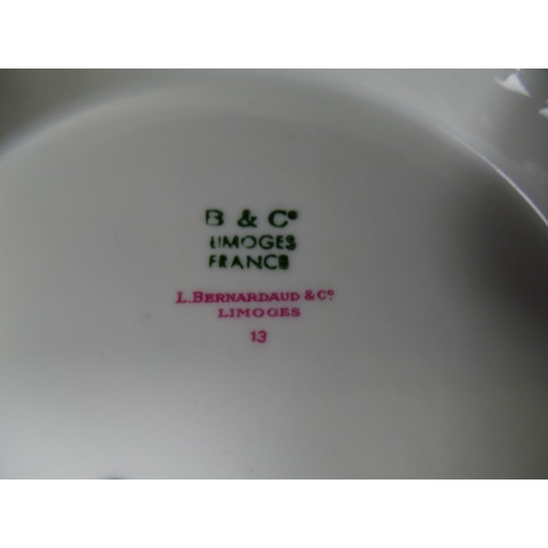 Saladier/bol à salade en porcelaine de Limoges estampillée L. Bernardaud et cie, décor floral réhaussé main, début XXème.