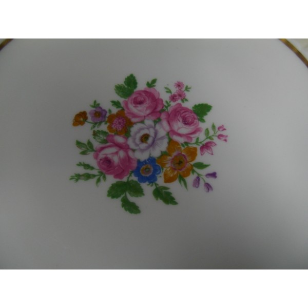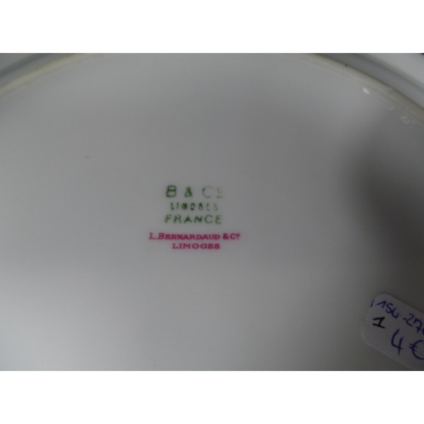 Assiette plate en porcelaine signée L. BERNARDAUD et cie à Limoges, bord chantouré à décor floral réhaussé main, modèle ancien début XXème.