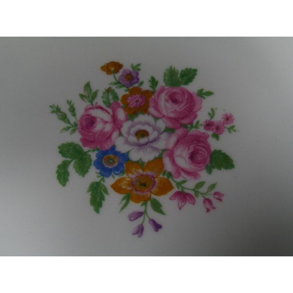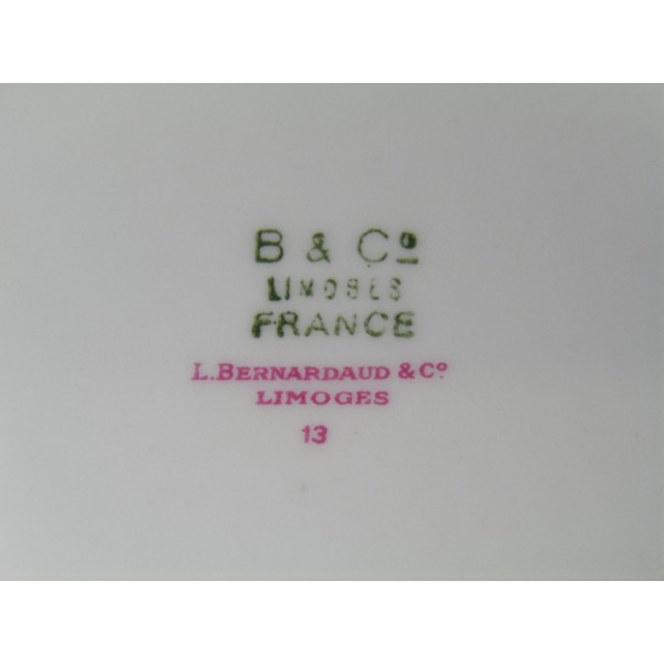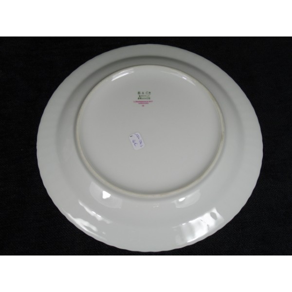 Assiette plate en porcelaine signée L. BERNARDAUD et cie à Limoges, bord chantouré à décor floral réhaussé main, modèle ancien début XXème.