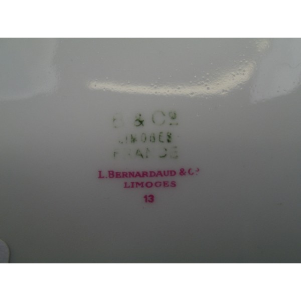 Assiette creuse/à potage en porcelaine signée L. BERNARDAUD et cie à Limoges, bord chantouré à décor floral réhaussé main, modèle ancien début XXème.