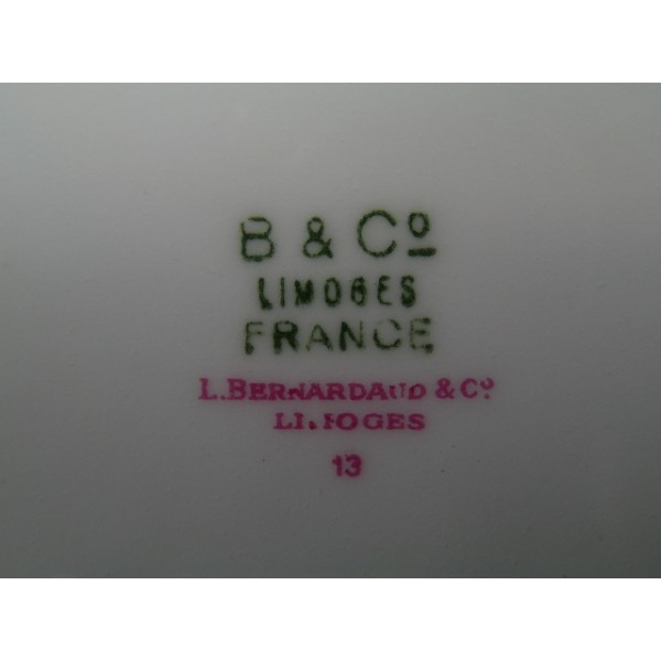 Assiette creuse/à potage en porcelaine signée L. BERNARDAUD et cie à Limoges, bord chantouré à décor floral réhaussé main, modèle ancien début XXème.
