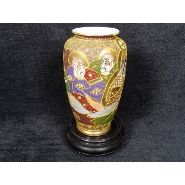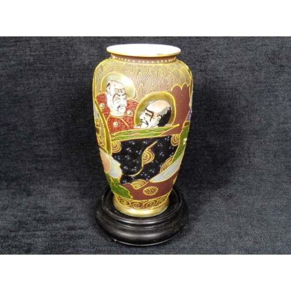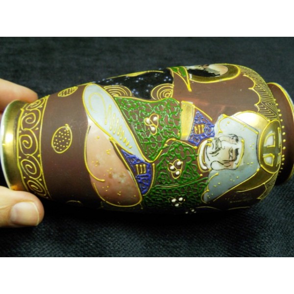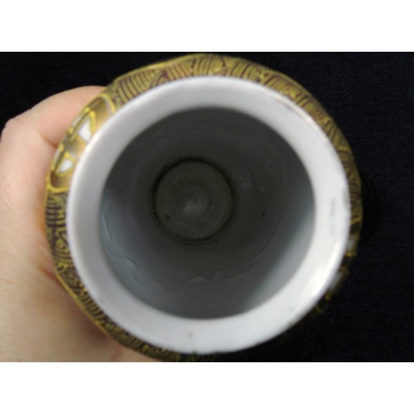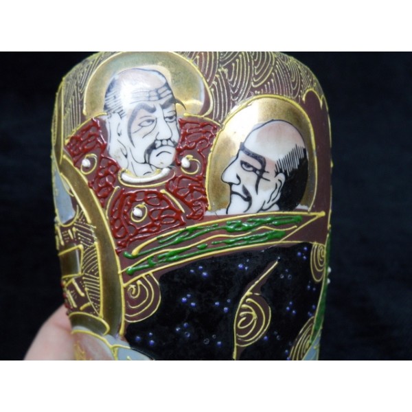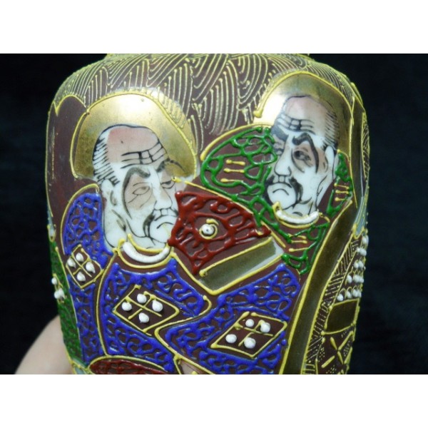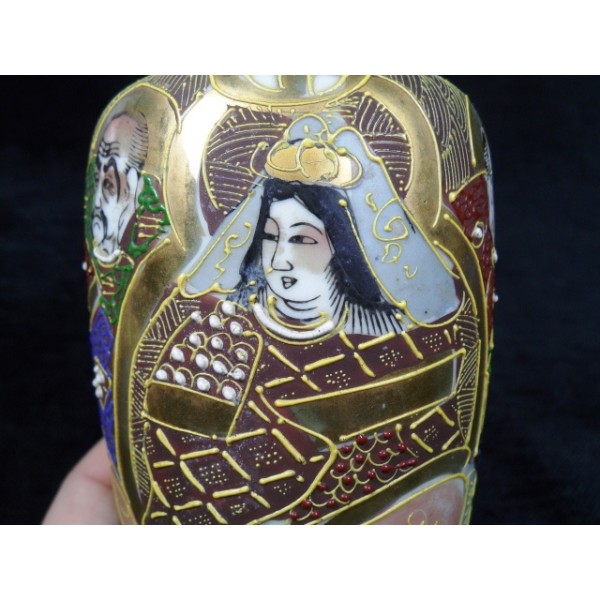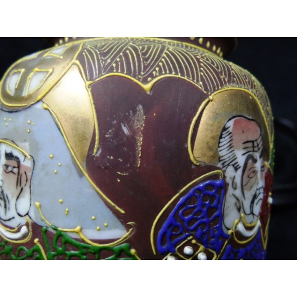Vase en porcelaine Satsuma du Japon, tampon trois idéogrammes japonais rouges dans un cartouche