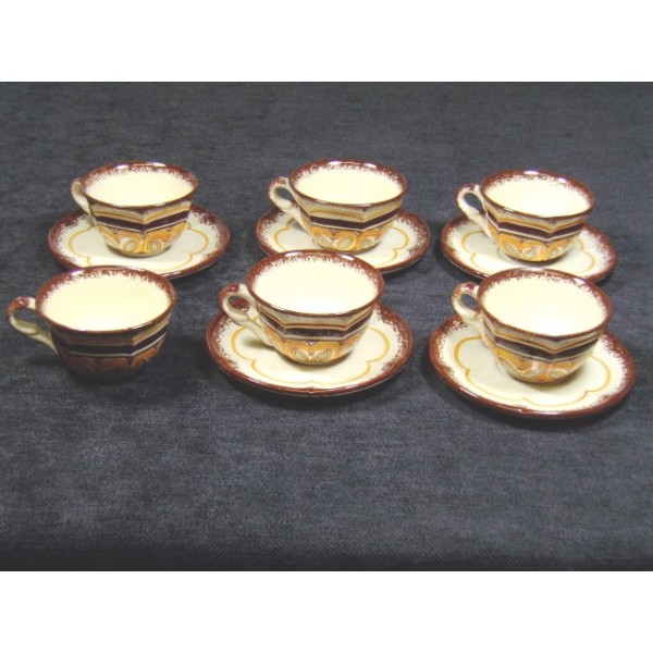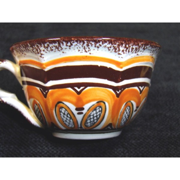 Ensemble tasses en faïence de Quimper signées Billiers composé de 6 tasses et 5 sous-tasses.
