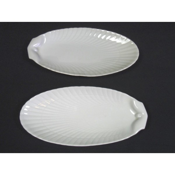 Paire de petits raviers en porcelaine dure blanche de Limoges, forme coquille.