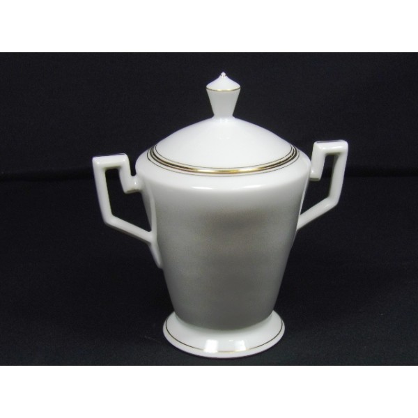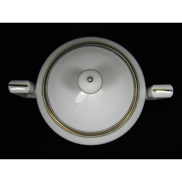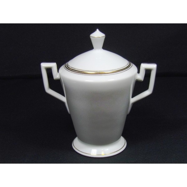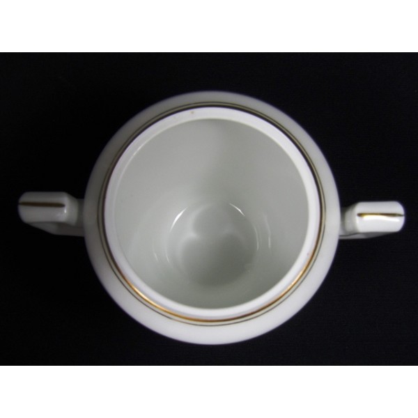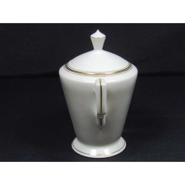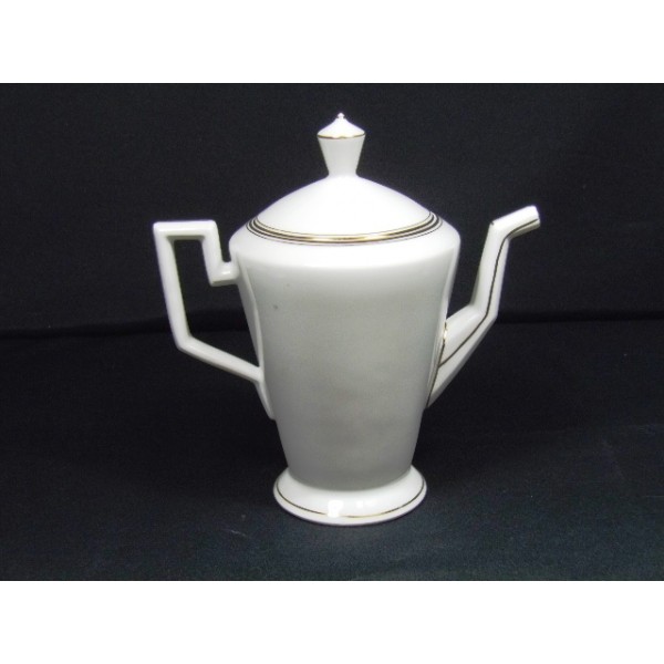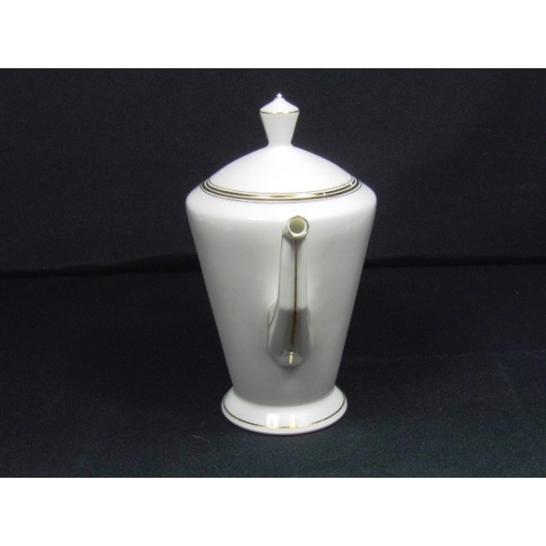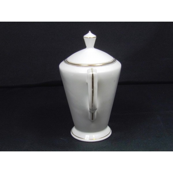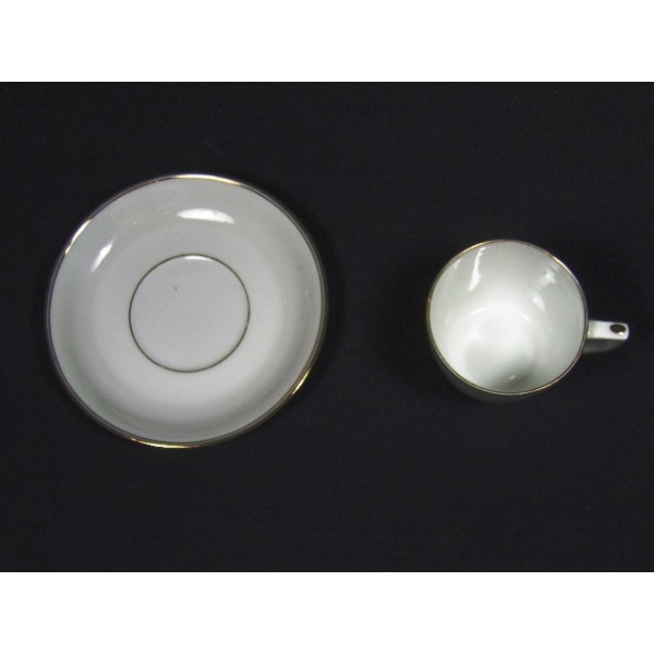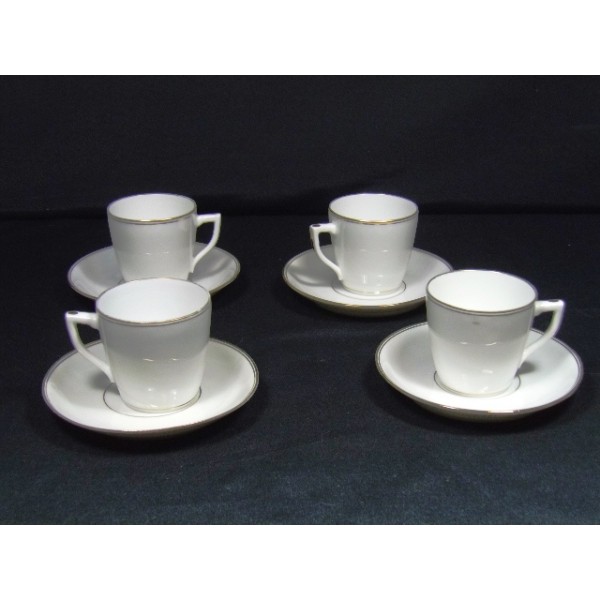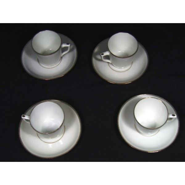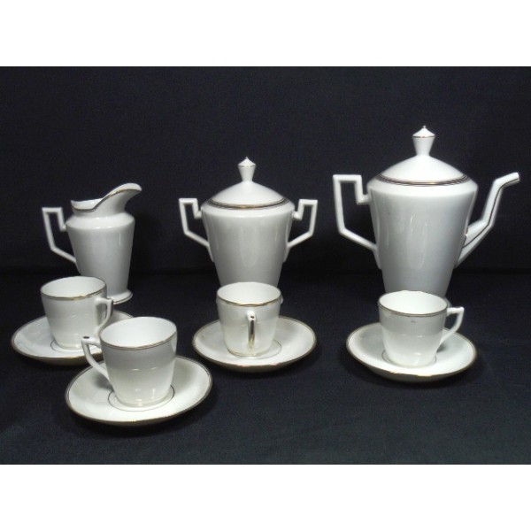 Partie de service à café en porcelaine, XIXème, décor de liseret doré, composé d'une verseuse à café, d'un sucrier couvert, d'un pot à lait, 4 tasses et leurs sous-tasses.